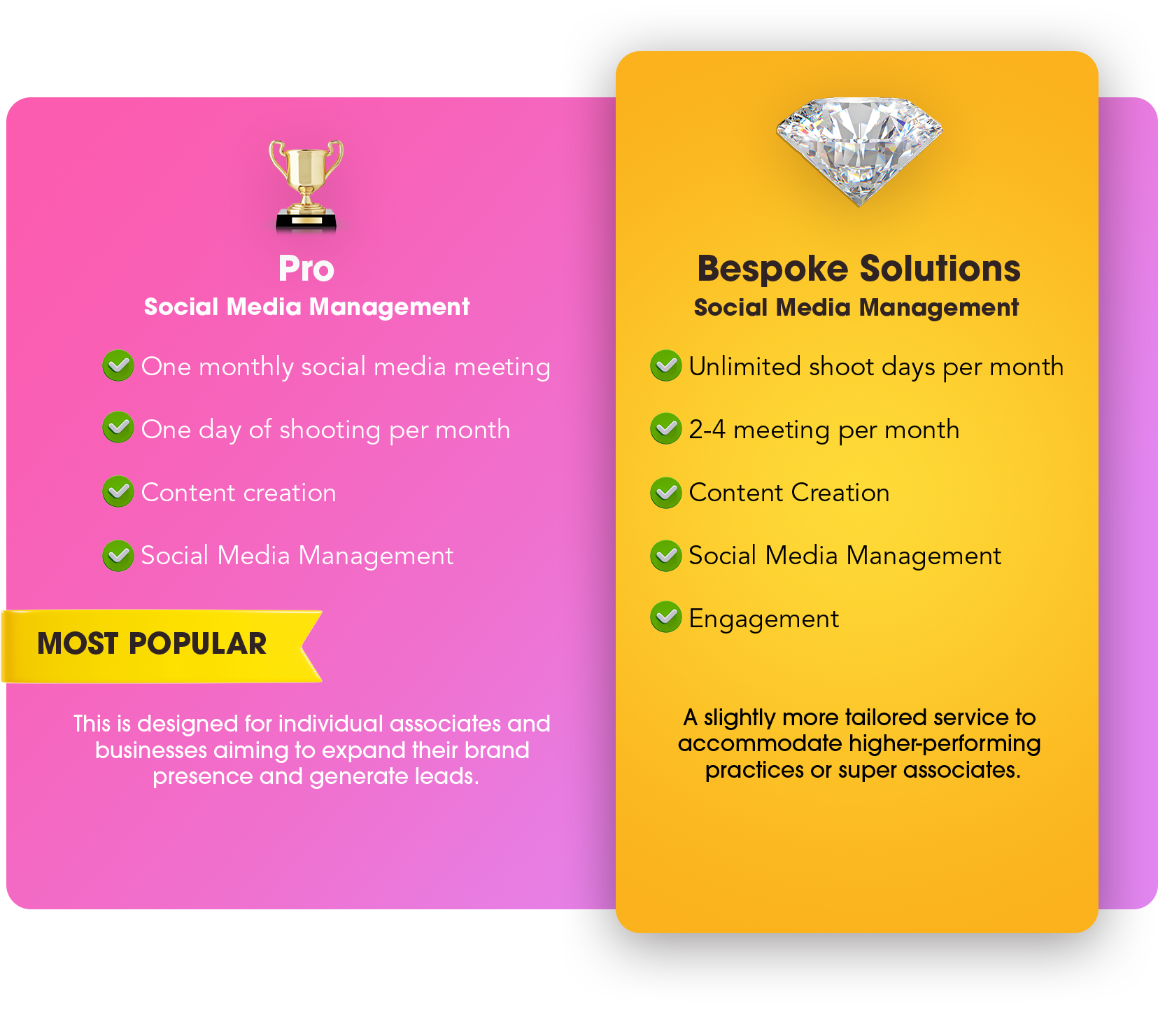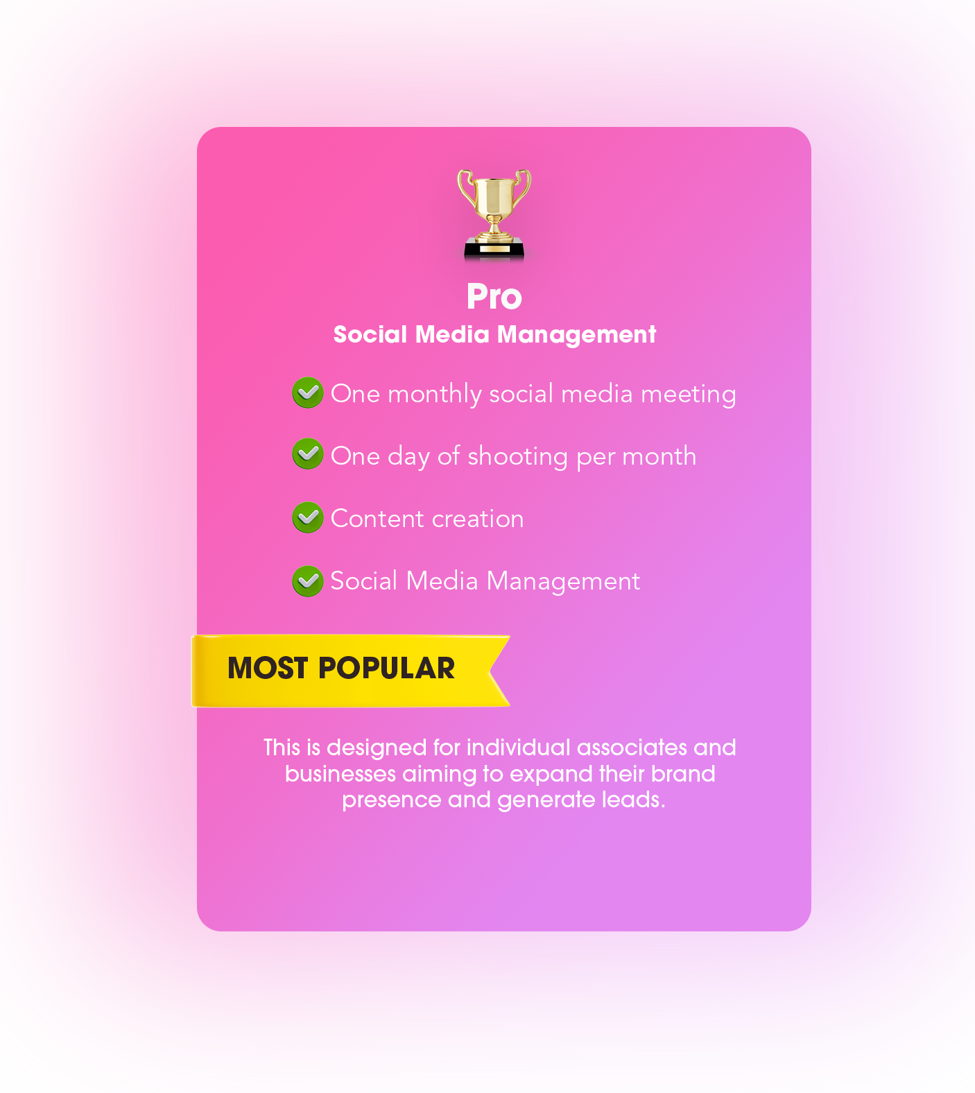 To elevate the online presence and visibility of our clients. We aim to craft compelling social media strategies that not only showcase their unique brand identity but also showcase their personality and talent to the public.